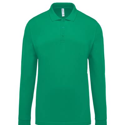 Tricou polo barbati, maneca lunga, bumbac 100%, Kariban Pique K256, verde kelly