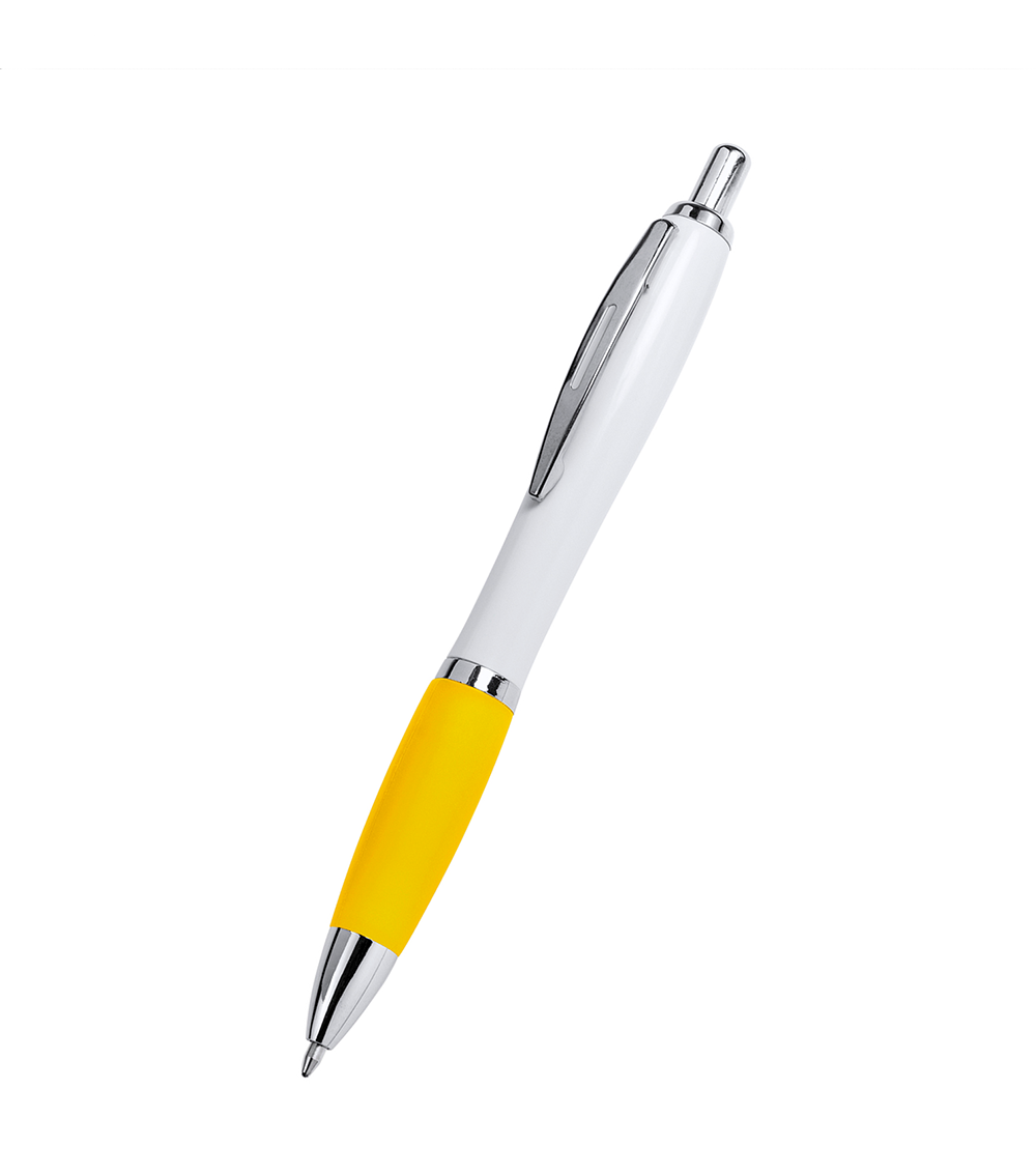 Pix fabricat din ABS. Grip din cauciuc colorat. Greutate redusa, Mina albastra, Mecanism actionat prin apasare. Varf, clema si buton cromate.