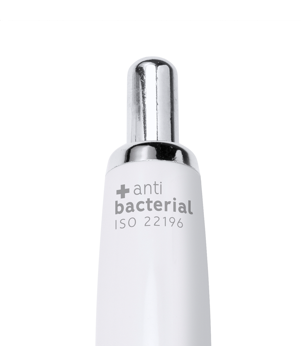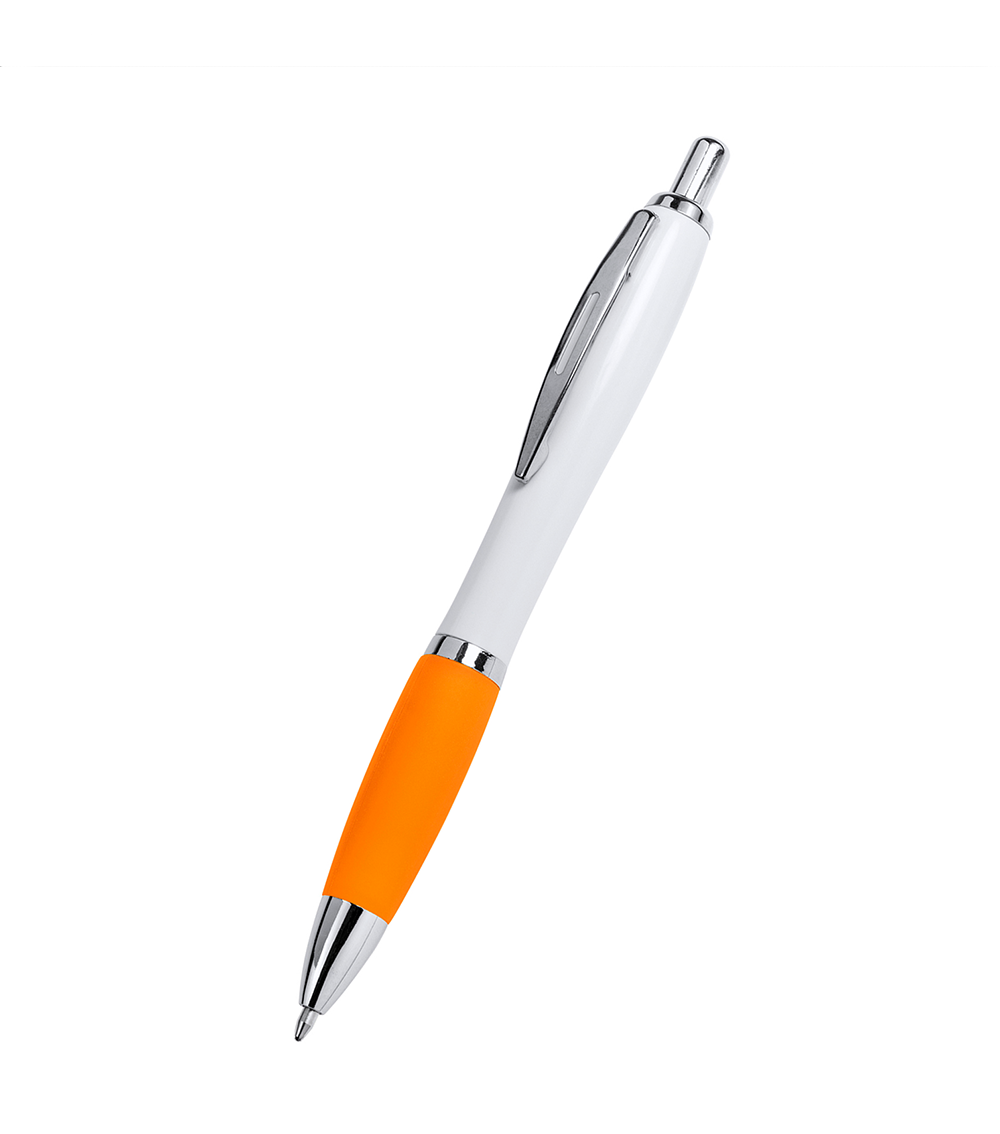 Pix fabricat din ABS. Grip din cauciuc colorat. Greutate redusa, Mina albastra, Mecanism actionat prin apasare. Varf, clema si buton cromate.