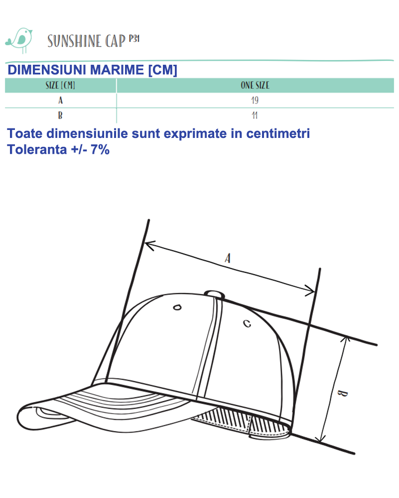 • şapcă cu şase paneluri, confecţionată din bumbac, de gramaj redus