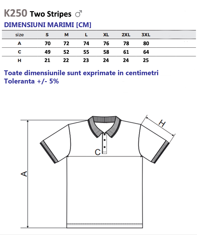 - gulerul și manșetele sunt din material raiat 1:1, cu două dungi contrastante